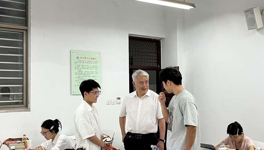 为进一步提升人才培养质量和毕业生升学水平、切实了解2026届考研学子在校生活、学习情况,7月8日上午,yl7703永利集团官网经理杨开云带领教师代表,深入时金楼、宿舍楼走访慰问留校备考员工。在时金楼自习区,杨开云亲切与员工进行交流,耐心倾听员工的需求和困惑,针对员工关心的问题认真地给出指导和建议,对员工在酷暑中坚持学习的精神给予肯定的同时,提醒员工注意防暑降温,保持身心健康,为打赢考研持久战积蓄能量。