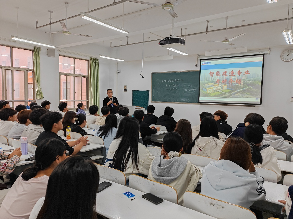 2025年9月27日下午14:30,2025级智能建造本科新生入学教育——专业介绍会于万林大楼327教室正式举行。会议由智能建造教研室主任李永涛老师主持,韩焜焜老师与李清雪教授共同参与,为新生带来一场内容丰富、深入浅出的专业启蒙。