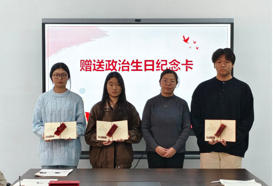 会议伊始,党支部书记王洋洋和组织委员李新为近期过政治生日的党员送上纪念卡,强化党员身份认同。随后,党支部书记王洋洋带领全体党员面向党旗庄严宣誓,通过重温入党誓词,党员们再次接受了心灵的洗礼,进一步坚定了理想信念,增强了党性修养,唤醒了党员们入党时的初心与信念。