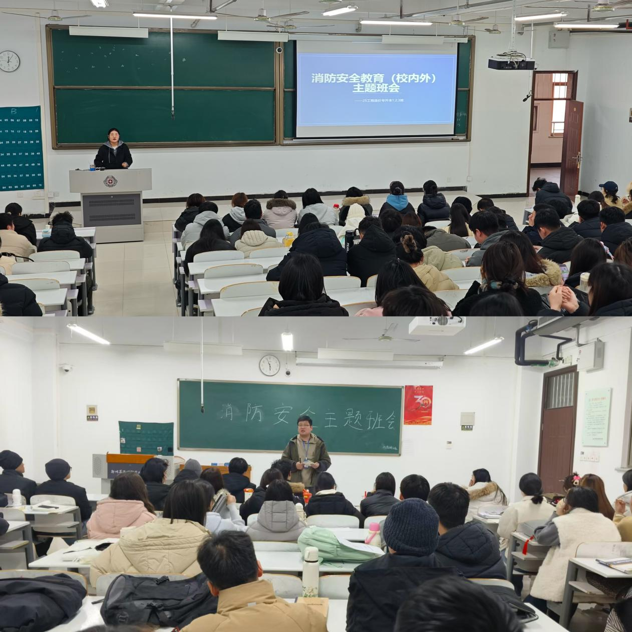 班会内容紧密围绕员工生活场景与实习需求展开。针对校内员工,各班级通过播放校园火灾警示片、演示灭火器使用步骤等形式,系统普及火灾预防、初期扑救及逃生自救知识。辅导员现场讲解宿舍用电安全规范,强调禁止使用大功率电器、禁止私拉乱接电线等具体要求,并组织员工观看模拟火灾发生时的应急疏散流程。