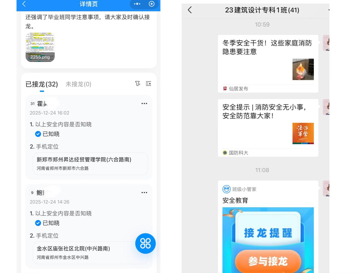 针对校外住宿、实习员工,各班通过线上班会,推送消防安全知识,内容涵盖水电使用安全、电动自行车规范充电、消防通道保持畅通、实习场地设备操作规范、实习单位应急疏散路线图等生活化场景,辅以真实案例剖析,引导员工识别并消除身边的安全隐患。
