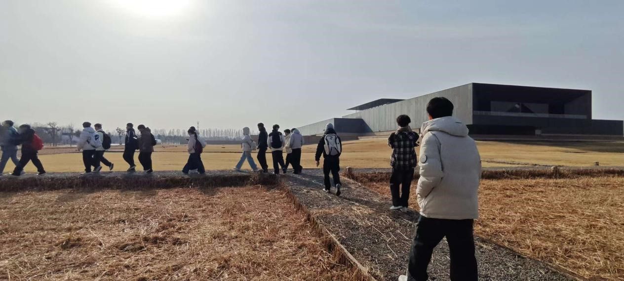 12月24日,实习团队首站抵达洛阳,开启了对历史建筑遗址的探寻之旅。在二里头夏都遗址博物馆,同学们跟随着老师的讲解,透过一件件文物、一幅幅复原图景,深入了解了中国最早王朝都城的规划布局与建筑形制,对早期宫殿建筑、夯土技术等有了直观认知,深刻体会到建筑作为文明载体的重要意义。随后,师生前往汉魏故城遗址博物馆,感受了汉魏时期都城建设的恢宏气势与“建中立极”的规划思想。当日下午,团队来到魏坡新序,近距离观察传统古村落的建筑风貌与现代活化利用模式,探讨了传统民居在当代语境下的保护与更新路径。